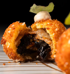 Crocchetta di patate con cuore di coda alla vaccinara.